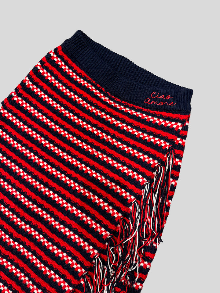 Aspen midi skirt with jacquard inlay and maxi slit with fringes