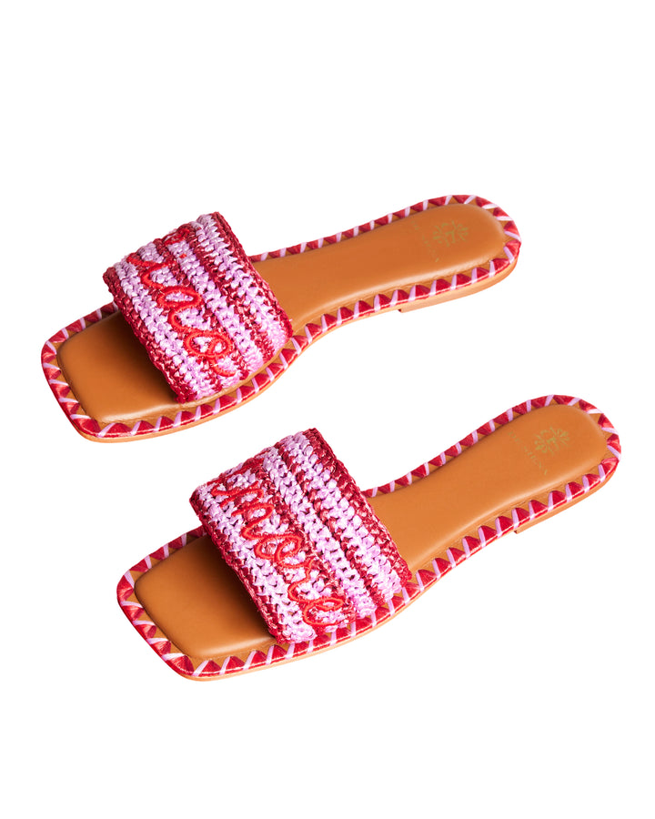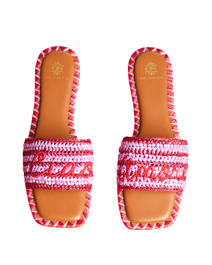 "Ciao Amore" multicolor stripes summer slides in raffia with embroidered logo