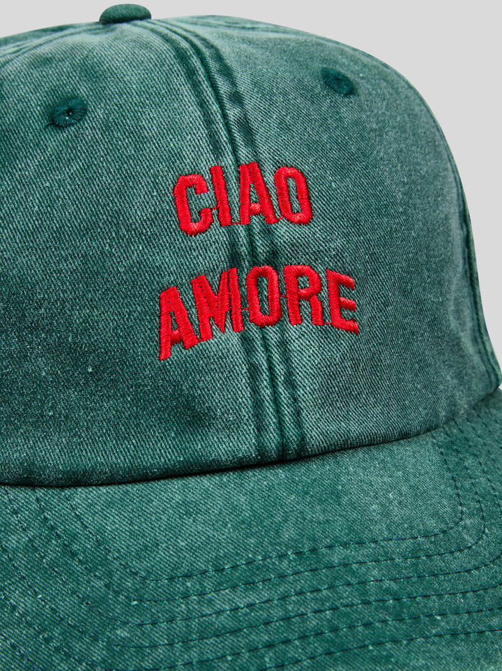 Cappello baseball effetto used con logo "Ciao Amore" ricamato.