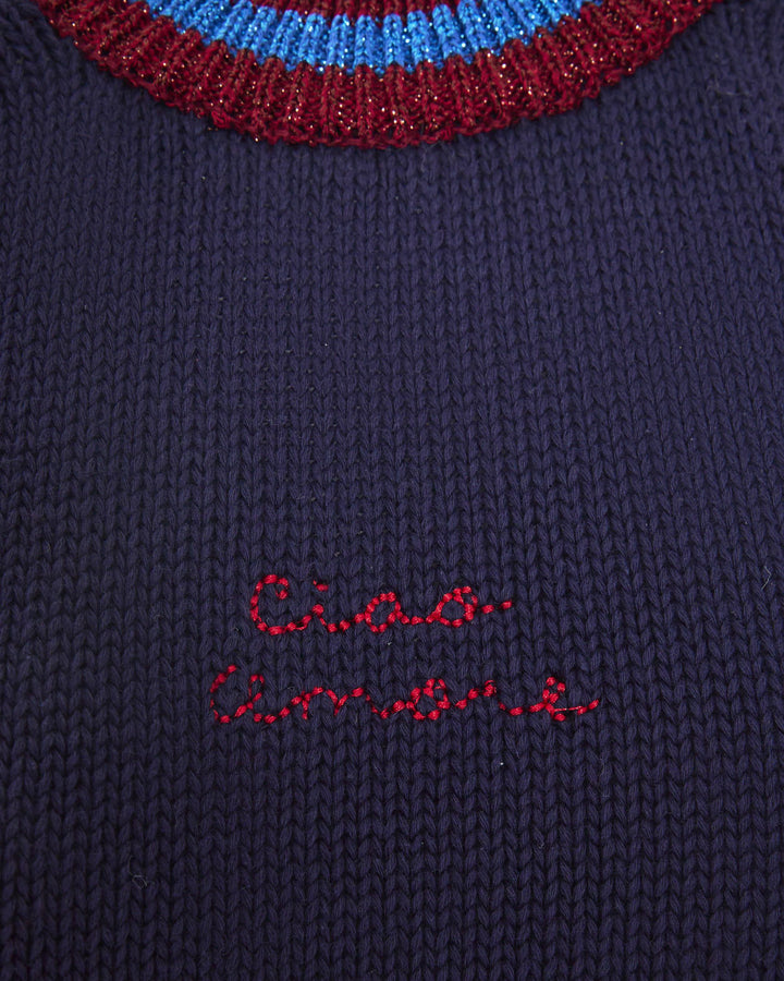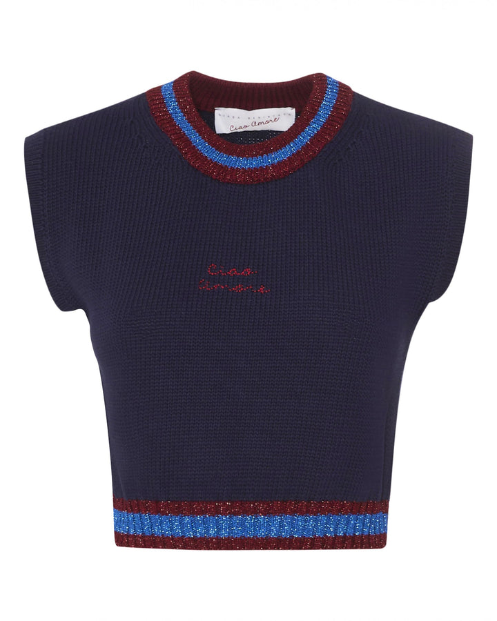Lurex cropped top in maglia con ricamo logo "Ciao Amore"