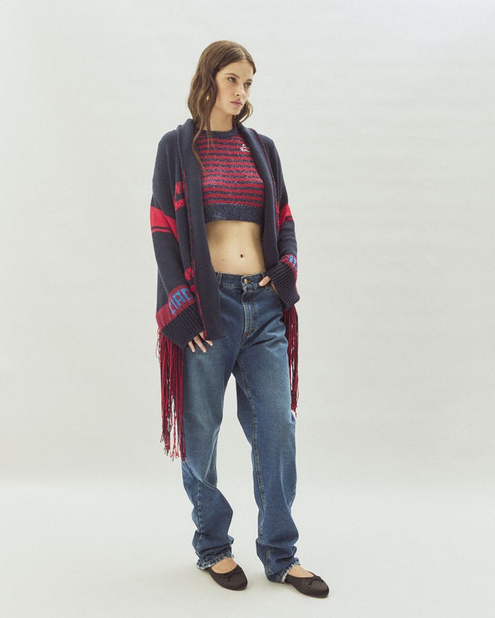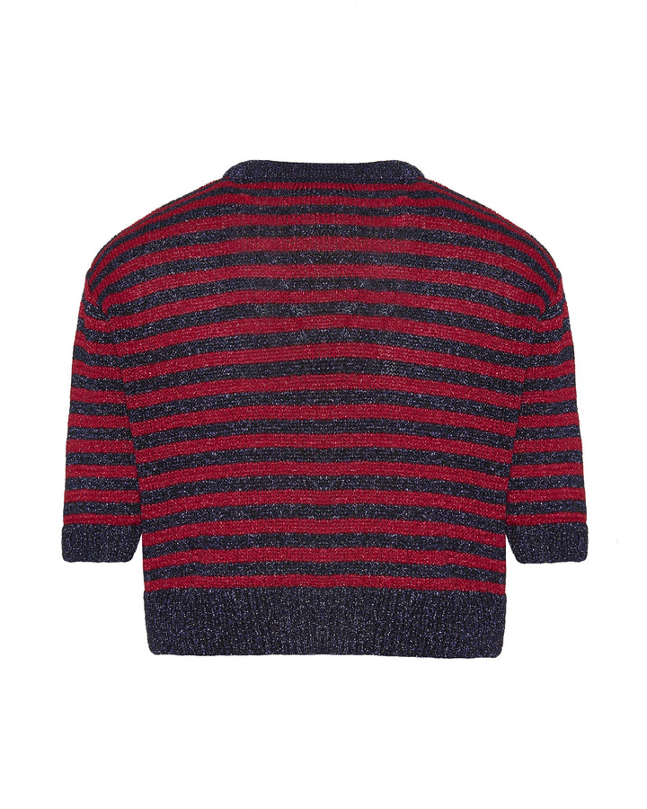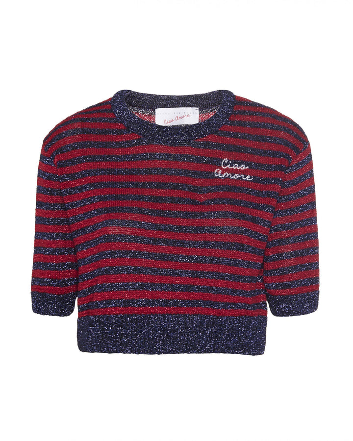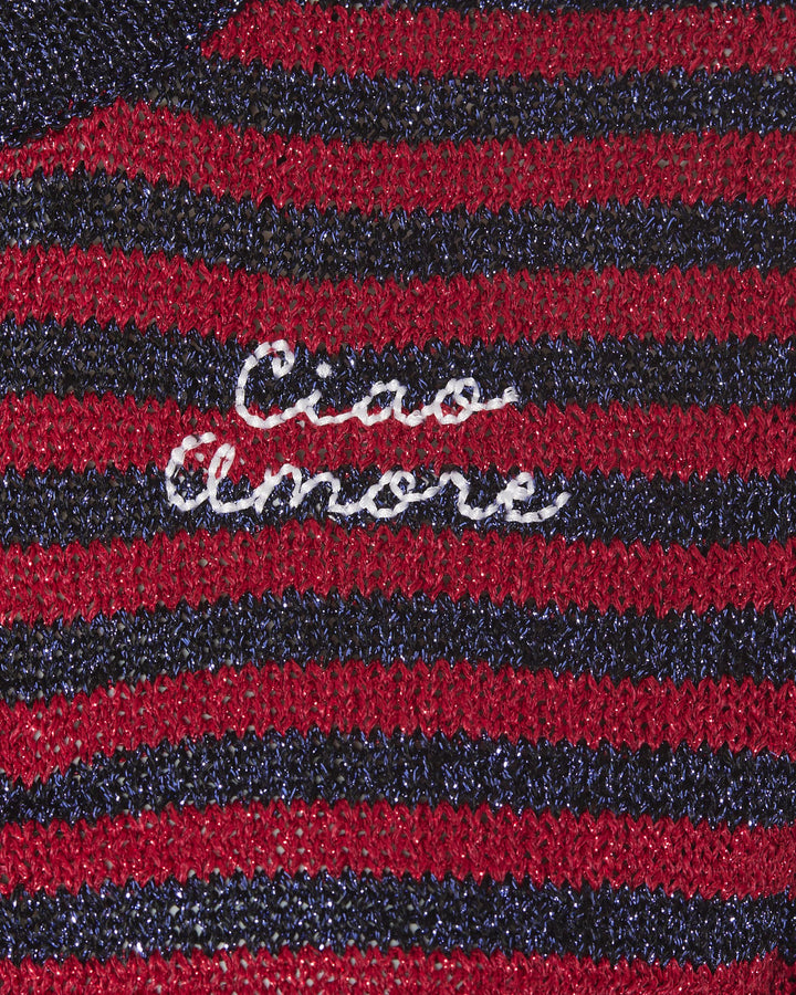 T-shirt a righe in maglia con filo lurex e logo "Ciao Amore" ricamato