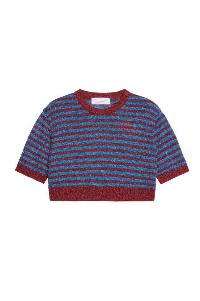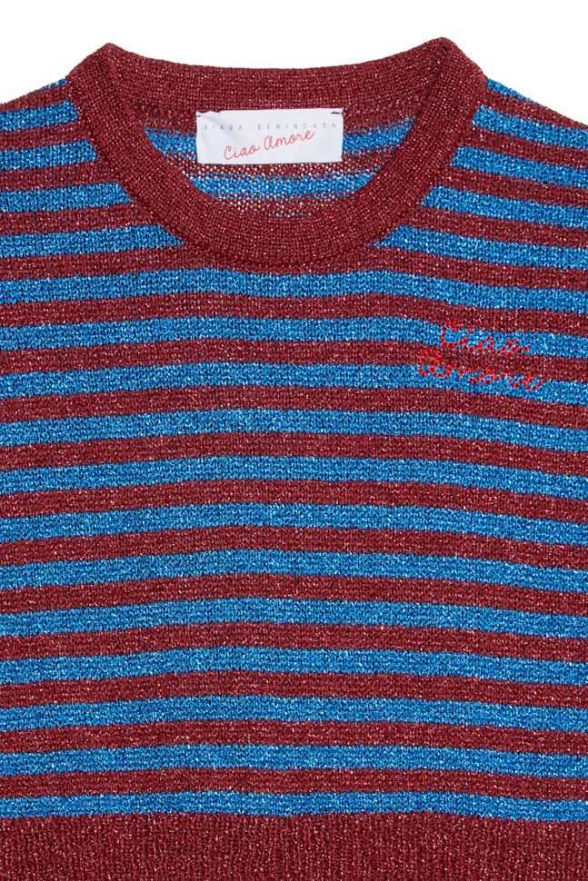 T-shirt a righe in maglia con filo lurex e logo "Ciao Amore" ricamato