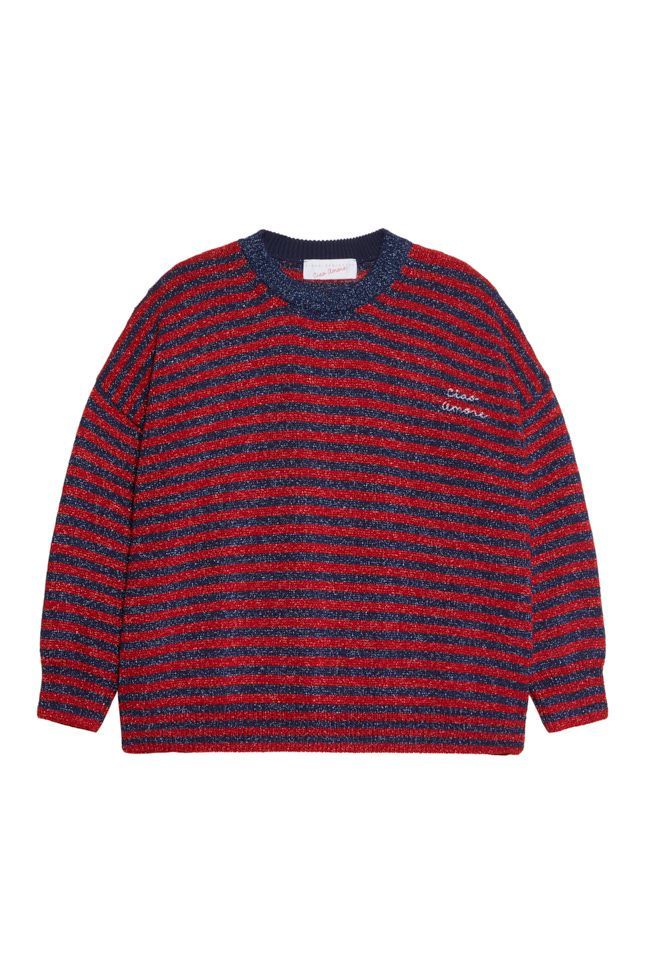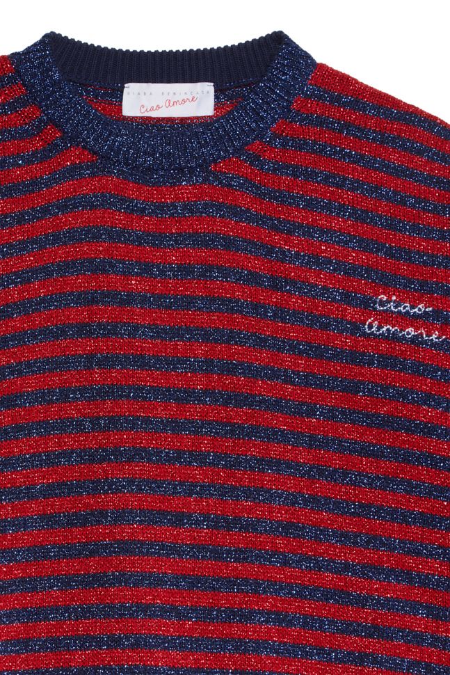 Lurex stripes maglia girocollo con "Ciao Amore" mini logo ricamato