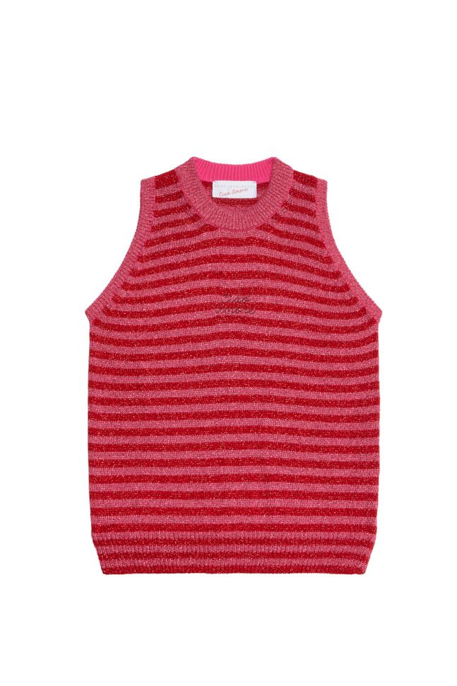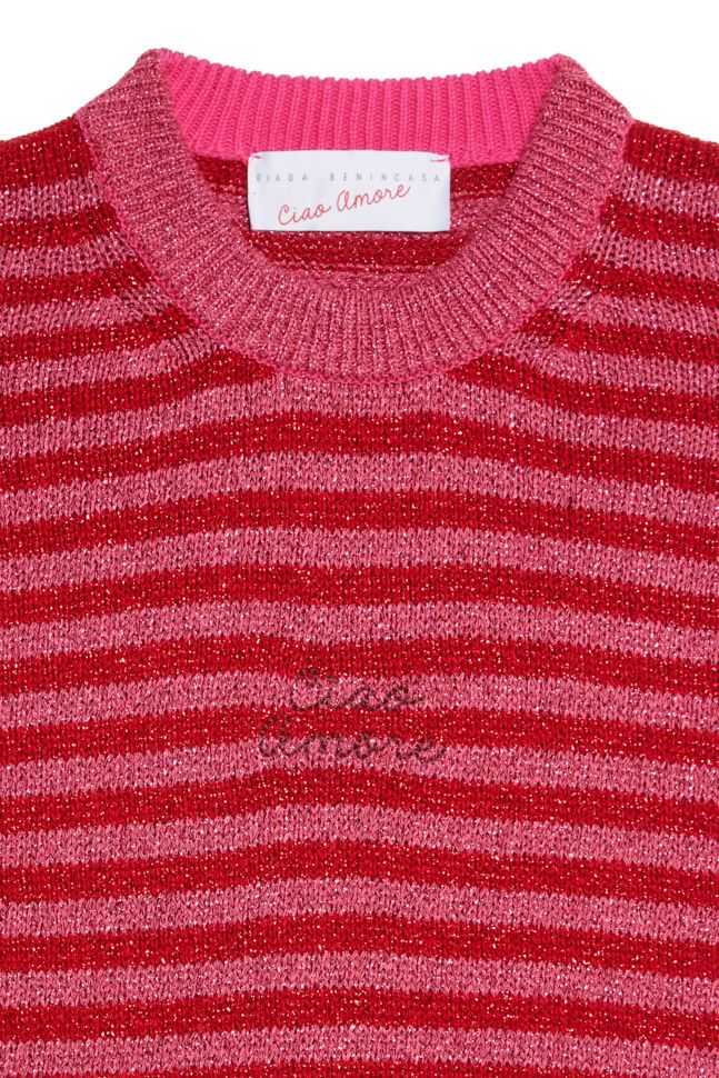 Lurex stripes tank top in maglia con "Ciao Amore" mini logo ricamato a contrasto