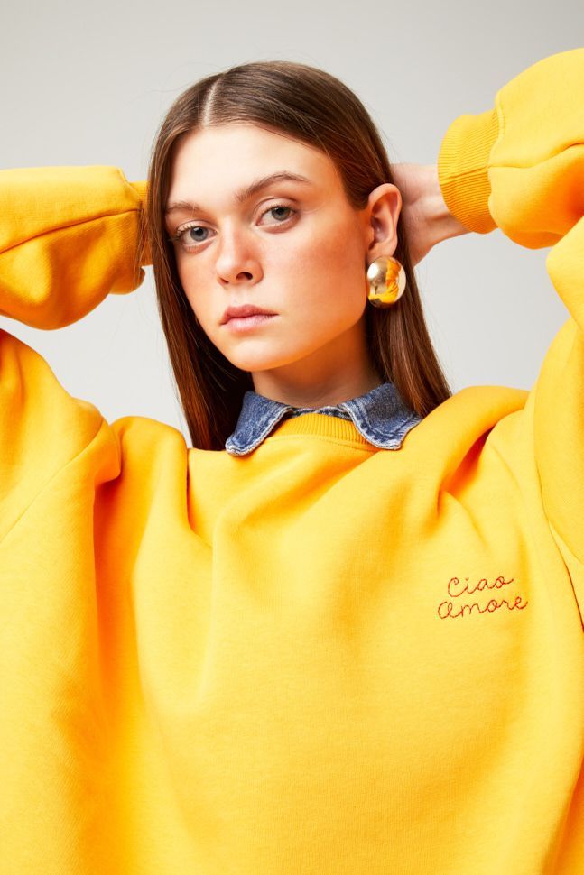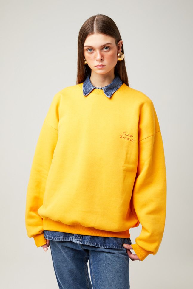 Iconic felpa girocollo con mini logo "Ciao Amore" ricamato.
